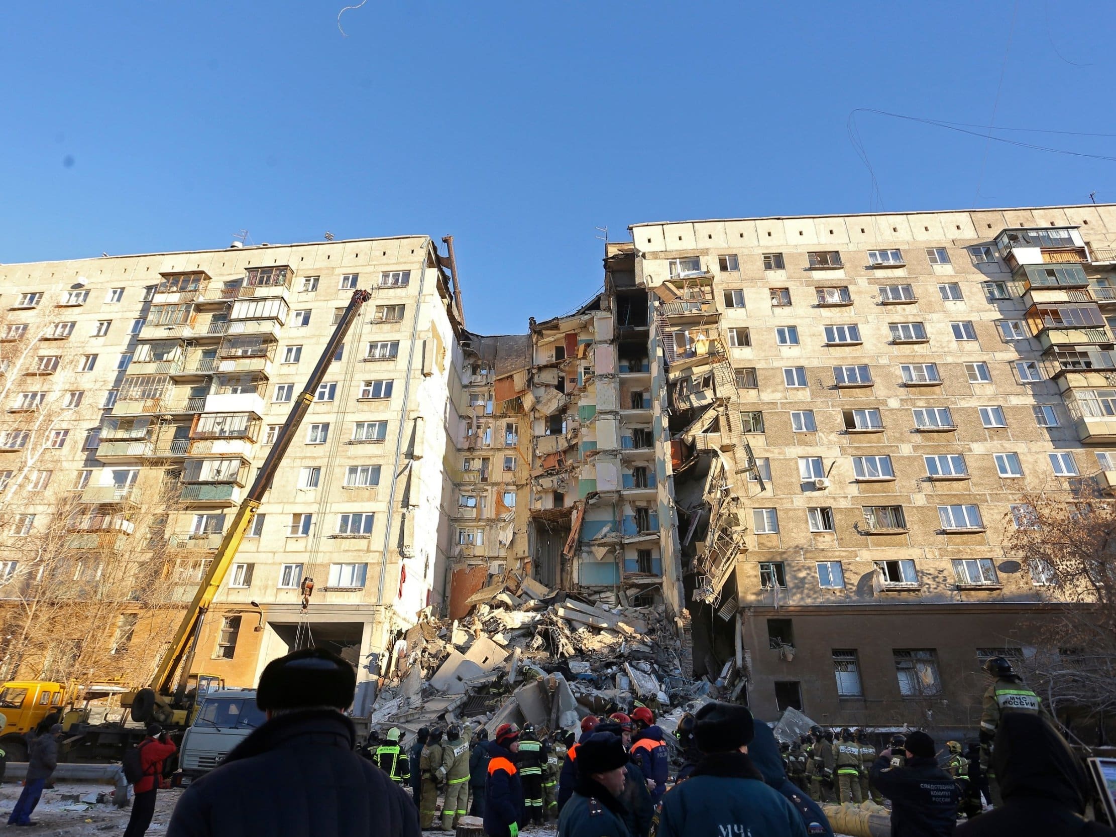 A large gas blast caused the 10-storey Soviet-era block of flats to collapse early on Monday.