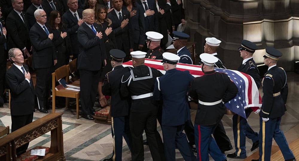 At a ceremony full of pomp but also peppered with laughter, the capital’s current political feuds were briefly set aside in honour of the late president, a naval aviator who survived being shot down by Japanese forces over the Pacific Ocean in World War Two, and a former head of the CIA during the Cold War.
