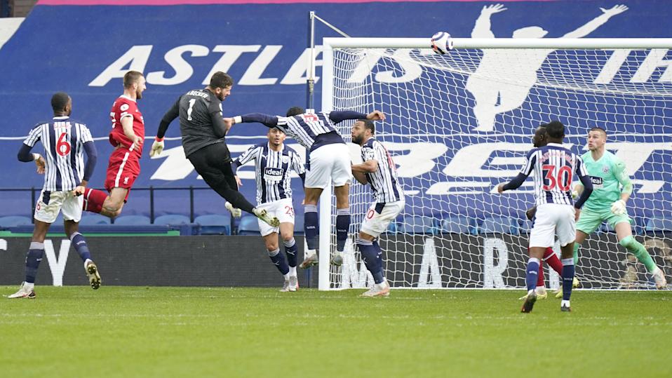 Goalkeeper Alisson Becker headed a dramatic stoppage-time winner at West Brom to keep Liverpool’s UEFA Champions League hopes alive.