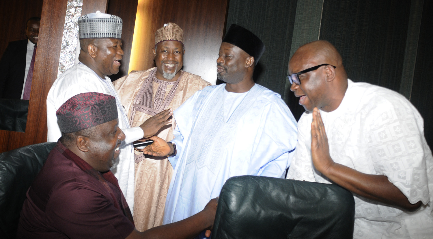 L-R: Governors Rochas Okorocha (Imo); AbdulAzeez Yari (Zamfara); Badau Abubakar (Jigawa); Ibrahim Dankwambo (Gombe) and Ayodele Fayose (Ekiti) during governors’ meeting with President Muhammadu Buhari at the Presidential Villa, Abuja…on TuesdayL-R: Governors Rochas Okorocha (Imo); AbdulAzeez Yari (Zamfara); Badau Abubakar (Jigawa); Ibrahim Dankwambo (Gombe) and Ayodele Fayose (Ekiti) during governors’ meeting with President Muhammadu Buhari at the Presidential Villa, Abuja…on Tuesday