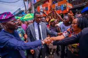 Governor Babajide Sanwo-Olu of Lagos State, on Tuesday, embarked on campaign tour of major markets populated by people from the South-East.