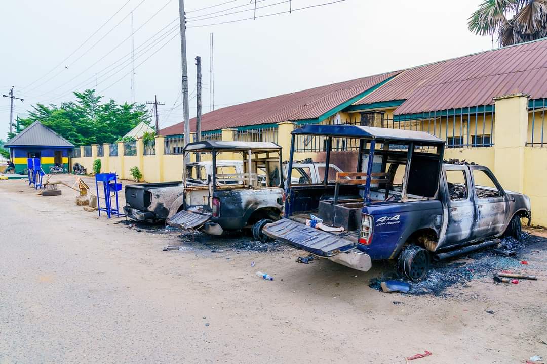 “The hoodlums, who came in two vehicles and a tipper, shooting sporadically, used a tipper vehicle in forcing the gate open to gain entrance into the station, throwing Improvised Explosives Devices (IEDS) and petrol bombs.