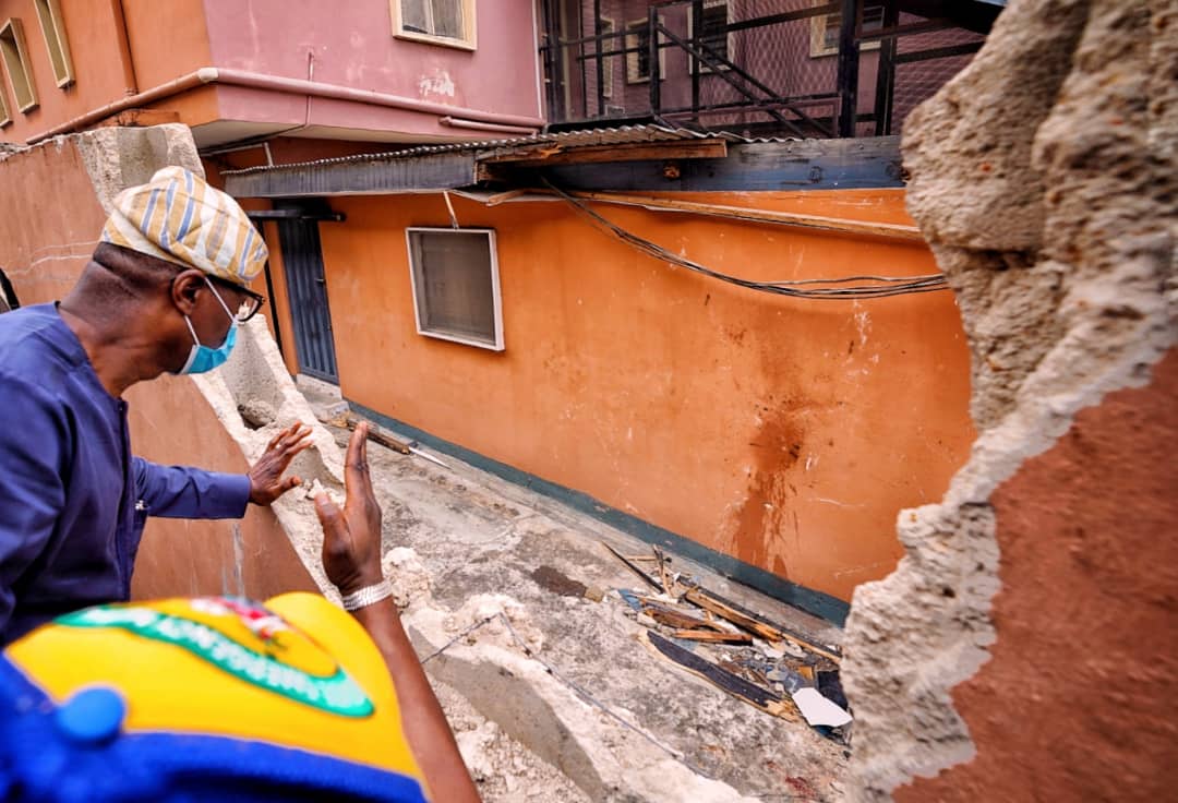 Speaking to journalists after looking round the crash site and meeting with the owners of the affected buildings, the Governor promised that Lagos State Government will carry out integrity tests on the buildings and do necessary repairs and assist the affected families.
