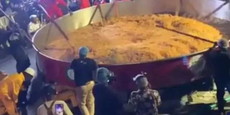 Freedomonline reports that after the preparation of the jollof rice, it was distributed to over 30,000 people in takeaway packs.