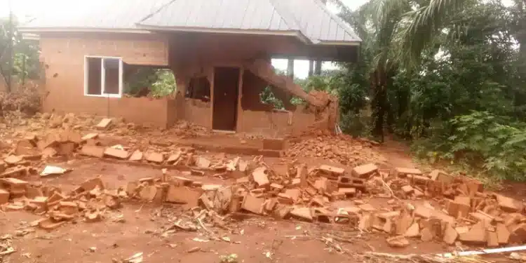 The hoodlums was said to have arrived Nnadi’s house in their numbers at midnight when he was asleep, shot sporadically in the air, attacked him and brought him outside before demolishing the house.