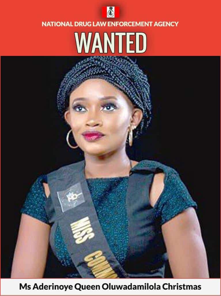 Meanwhile, an ex-beauty queen, Ms. Aderinoye Queen Christmas also known as Ms. Queen Oluwadamilola Aderinoye has been declared wanted by the Agency after she escaped from her Lekki, Lagos residence when NDLEA operatives raided her apartment at Oral estate, Lekki on Wednesday 24th January following credible intelligence she deals in illicit substances. The suspect was Miss Commonwealth Nigeria Culture 2015/2016 and founder of Queen Christmas Foundation. Recovered from her home during the search witnessed by the estate officials include 606 grams of Canadian Loud, a synthetic strain of cannabis, an electronic weighing scale, large quantities of drugs packing plastics, a black RAV 4 SUV marked Lagos KSF 872 GQ, and her picture frame among others.