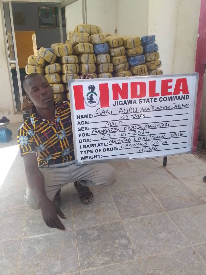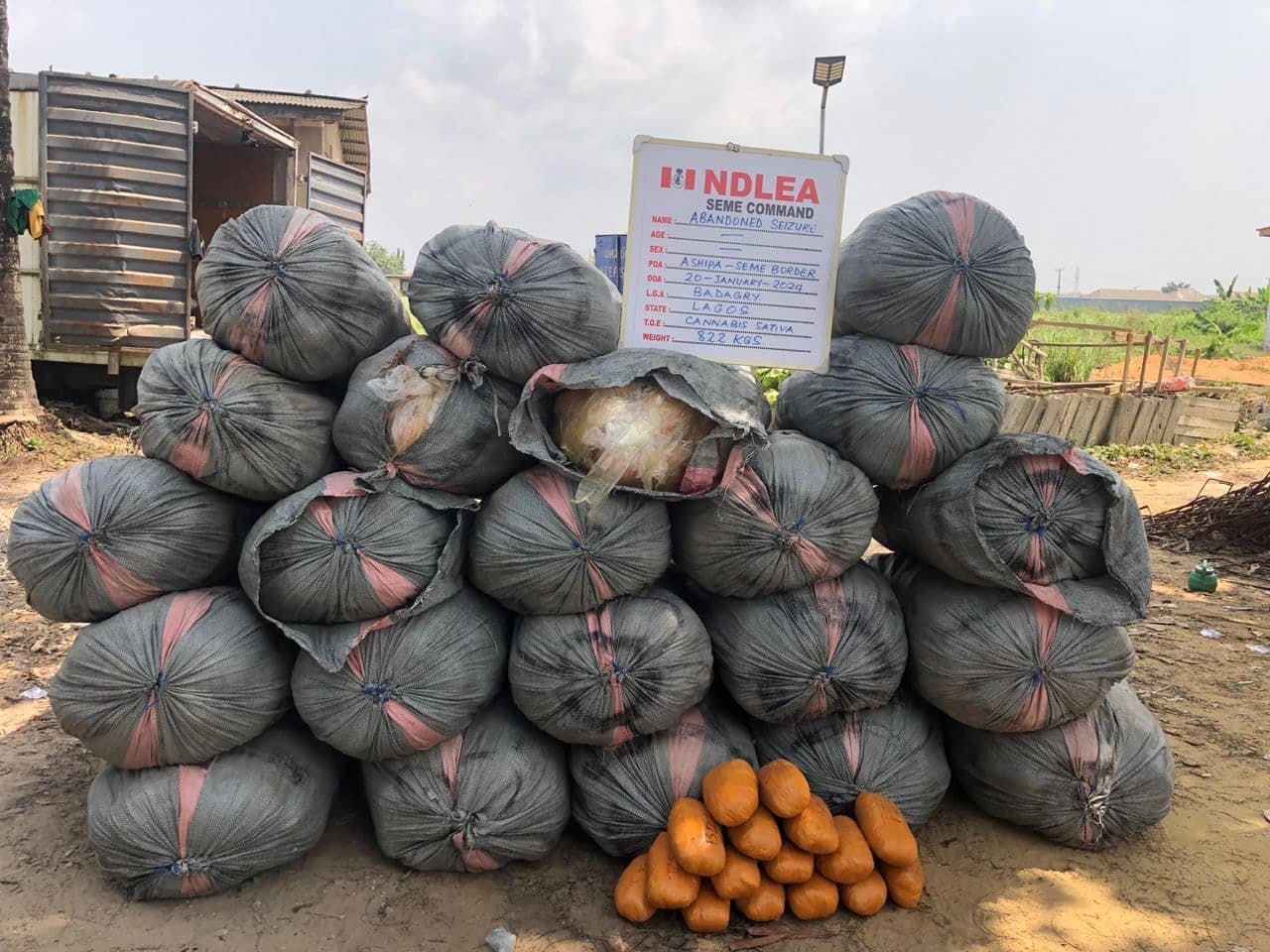 Not less than 822 kilograms of cannabis sativa hidden in a fuel station located at Ashipa community along Badagry-Seme road were recovered by operatives of the Seme Special Area Command of NDLEA, while a suspect Sani Audu, 35, was arrested with 111.3kg of same substance at Maigatari town in Jigawa State on Tuesday 23rd January.