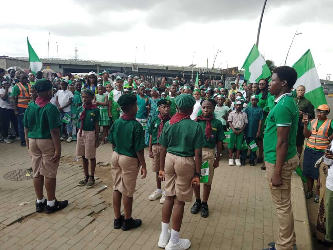 The primary school pupils in their scores, accompanied by their teachers, including the Proprietress, Omolara Adedugbe; Director, Oluwaseun Amusa; and some parents, went to Oja Oba area of Abule Egba and the newly-remodelled Retail Market in Ogba for the rally to commemorate the independence anniversary.