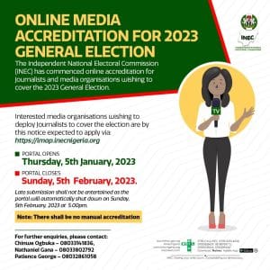 The Independent National Electoral Commission (INEC) has commenced online accreditation for Journalists and media organisations wishing to cover the 2023 general elections.