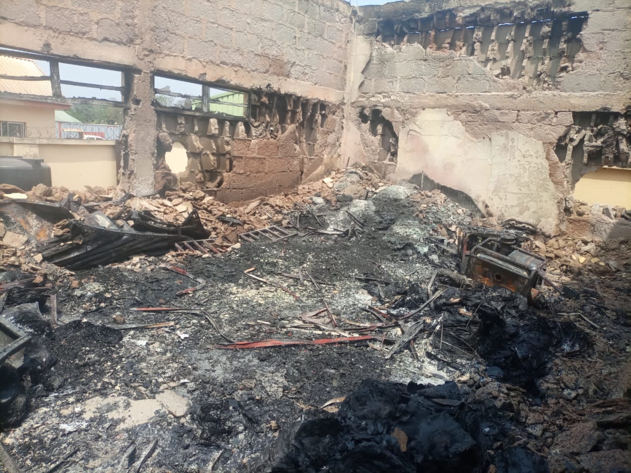 The building was substantially damaged. All furniture and other items were destroyed, including non-sensitive materials recently delivered in readiness for the 2023 General Election. Among the items lost to the inferno are 729 ballot boxes, 243 voting cubicles, 256 election bags, 11 megaphones, 1 electric power generator and large quantities of indelible ink and liquid gum.