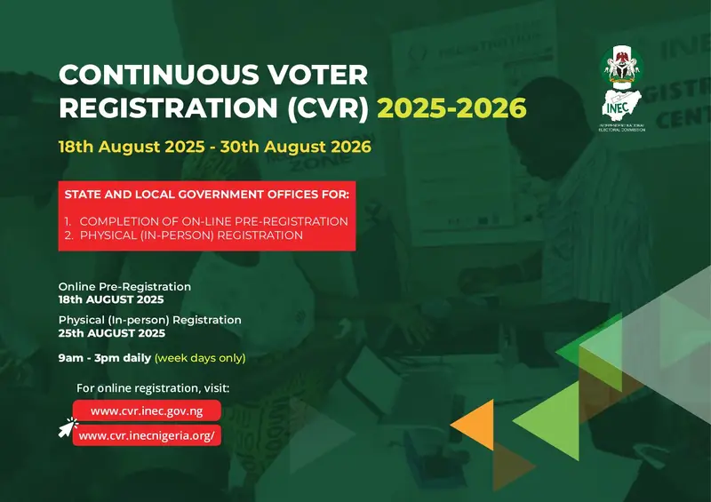“The locator will go live a day to the commencement of the CVR on Aug.17, 2025 and can be accessed at the following address https://cvr.inecnigeria.org/locator,’’ he said.