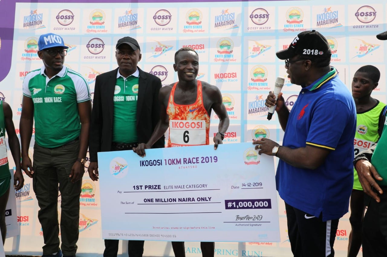 He defeated over 2,000 other athletes to the finish line to win the N1 million prize in an impressive time of 30 mins 40seconds.