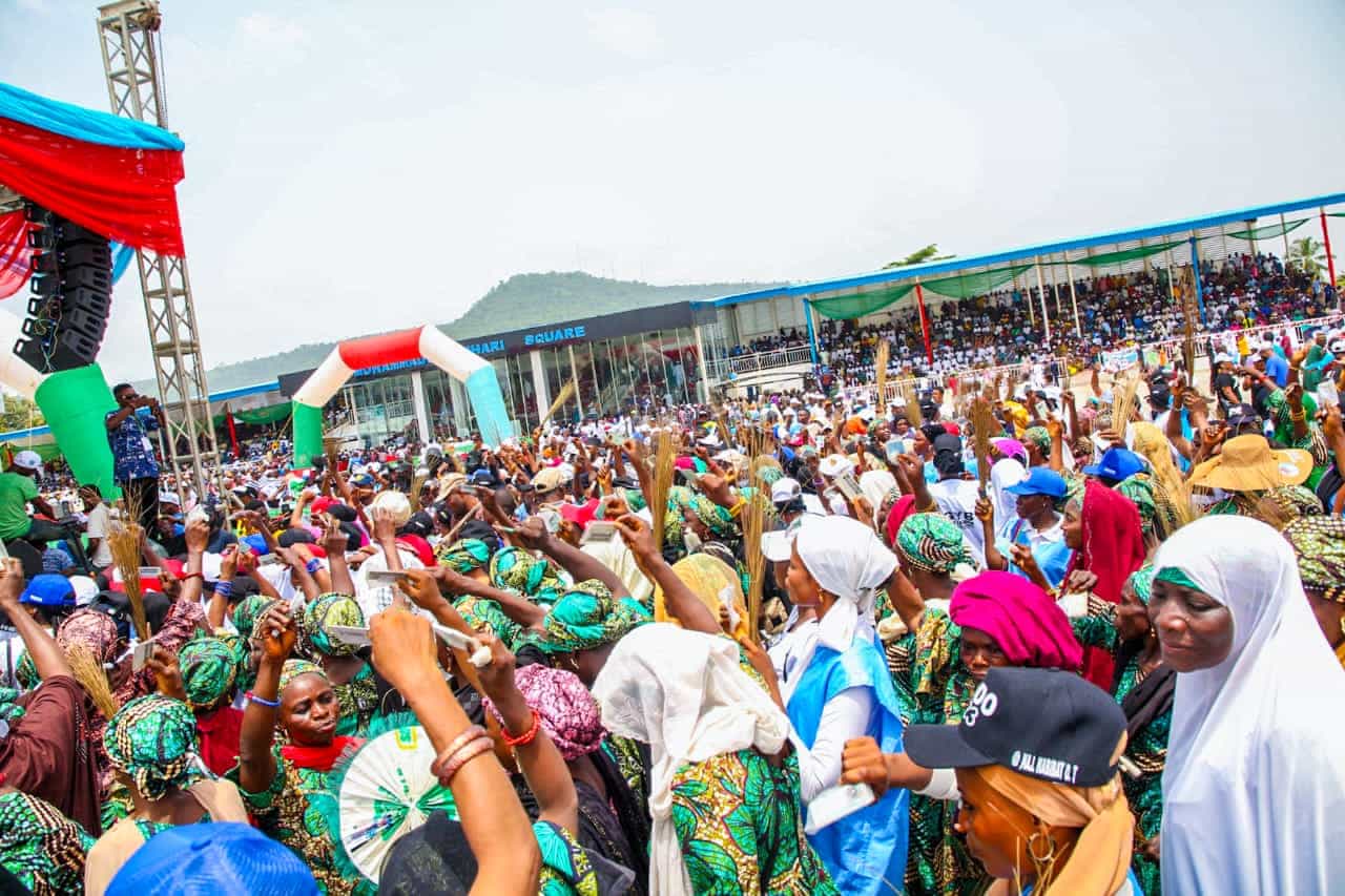 The Muhammadu Buhari Civic Centre, Lokoja, one of the sterling achievements of Governor Yahaya Bello of Kogi State, could not contain the crowd that struggled to witness the historic inauguration of the All Progressives Congress Governorship Campaign and presentation of flag to the candidate of the party, Usman Ododo.