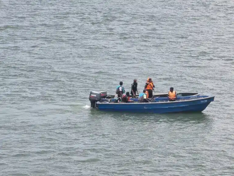 He said that personnel of the Marine Police were in search of the two adults, a male and female, who fell off the LT 18-seater bus.