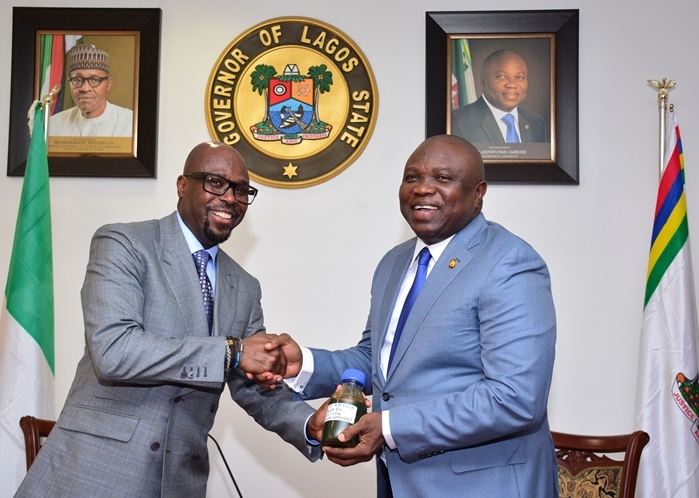 Folawiyo also presented Ambode with a sample of the crude oil discovered by his company in the State, a confirmation of Lagos becoming the first basin out of the Niger Delta to become an oil producing state, which according to him, is by no means a small feat.