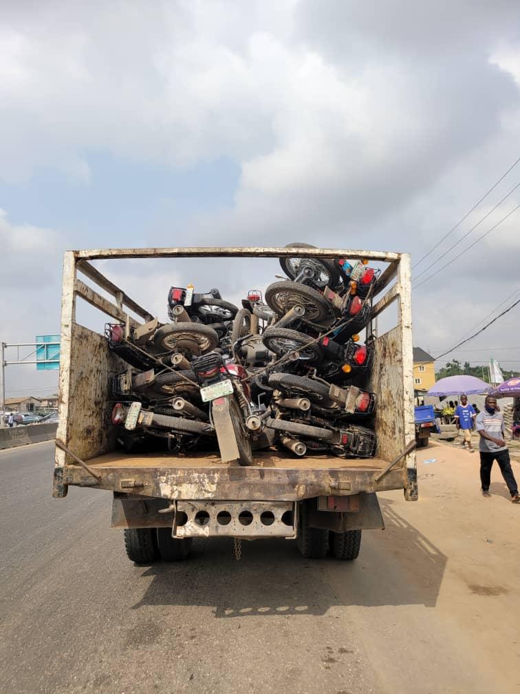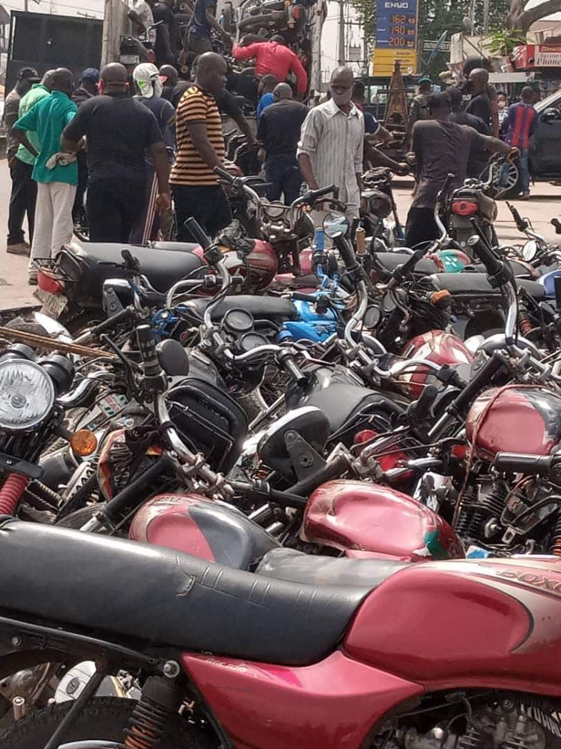The 80-man team, led by the new Taskforce chairman, Shola Jejeloye, a Superintendent of Police (SP), in an early morning enforcement in Iyana Ipaja, rounded up scores of Okada riders illegally operating on routes, which the State Government had designated as restricted areas for commercial motorcycles.