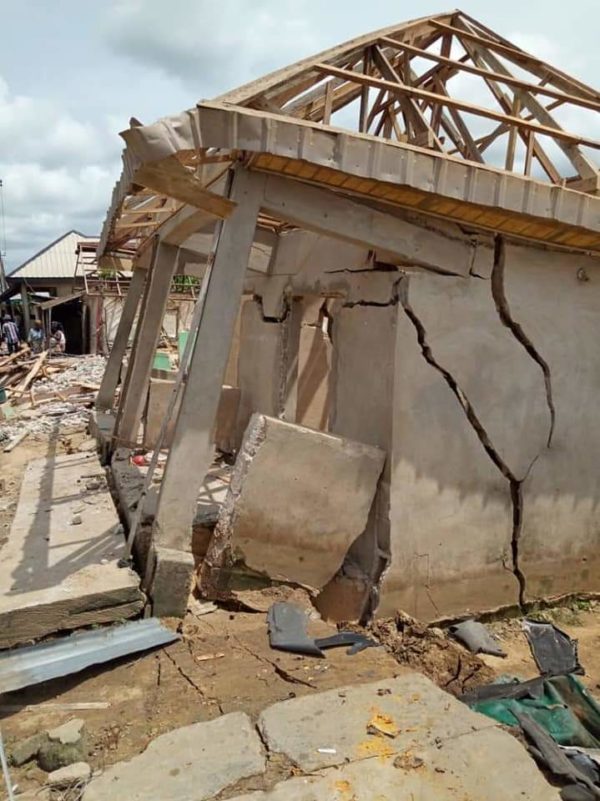 “It is one of the many challenges faced by riverine communities. It started at about 7: 00 a.m. as earth tremor; and two hours later, the ground gave way causing the houses to collapse.