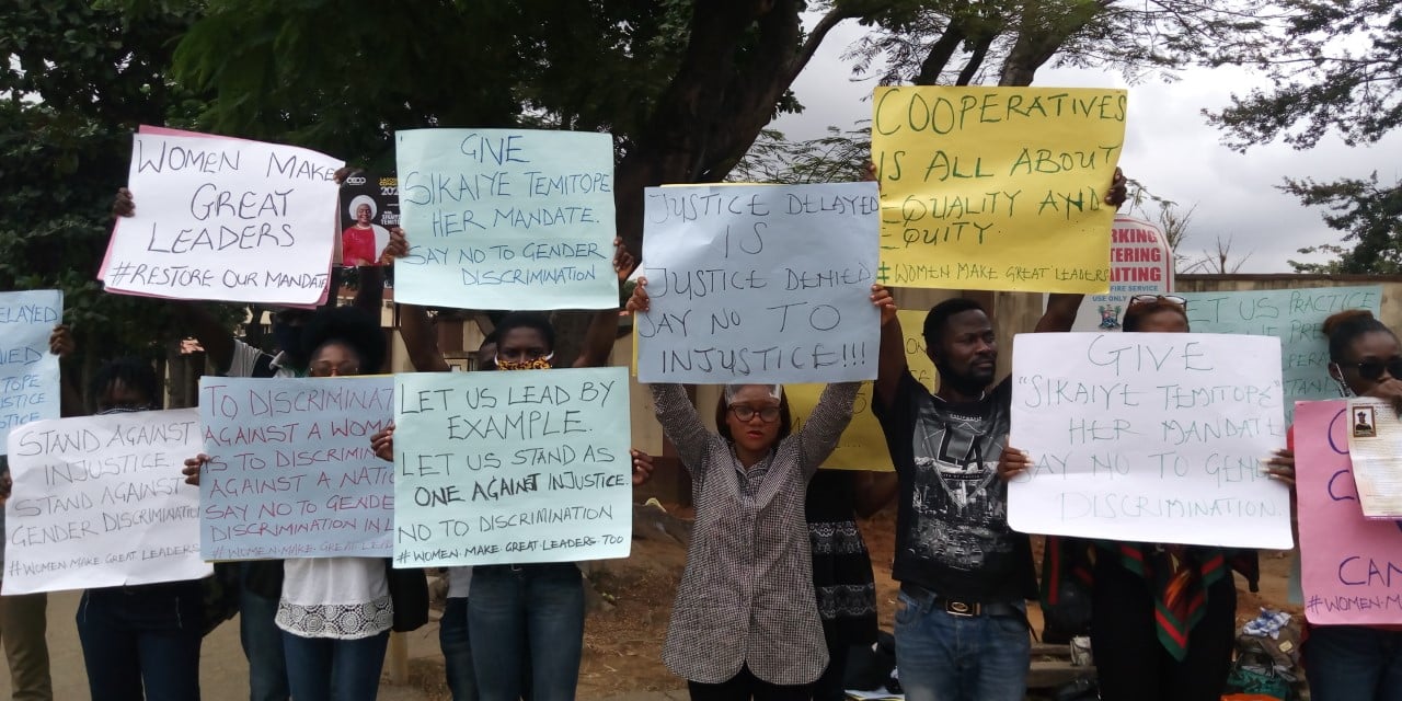 Mr. Victor Oyegoke, who spoke on behalf of the president on Monday at a protest at Lagos State Secretariat, Alausa, said “we would like to bring to the notice of the Executive Governor of Lagos State the grave injustice that was perpetrated against the will of the Cooperators who on August 27, voted into office the first female president of (LASCOFED)”.