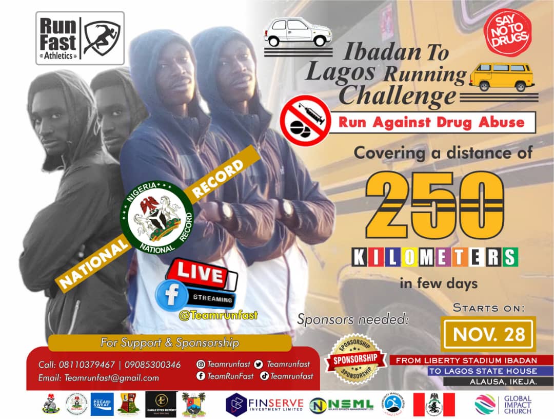 The marathon is tagged ‘Ibadan to Lagos Running Challenge’.