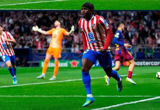 Nigeria’s Ademola Lookman’s 31st-minute goal on Tuesday night secured Atletico Madrid’s aggregate victory over Barcelona, sending Diego Simeone’s side into the Champions League semi-finals.