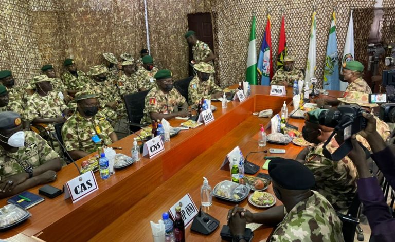 Defence Minister, Maj.-Gen. Bashir Magashi (rtd), on Friday, arrived in Maiduguri on an assessment visit, accompanied by the Chief of Defence Staff, Gen. Lucky Irabor and Service Chiefs.