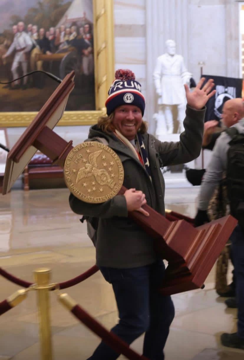 He has been charged with one count of knowingly entering or remaining in any restricted building or grounds without lawful authority; one count of theft of government property; and one count of violent entry and disorderly conduct on Capitol grounds, according to a federal complaint.