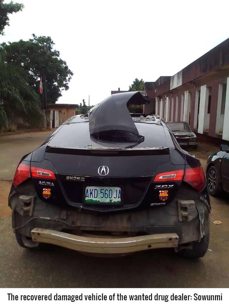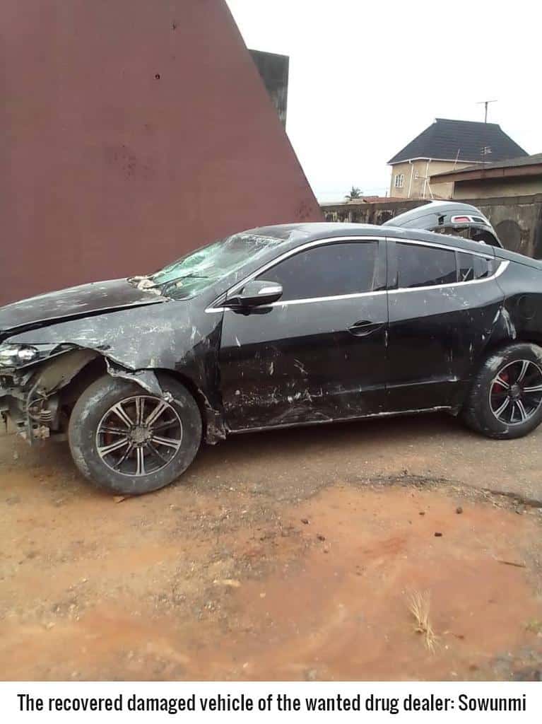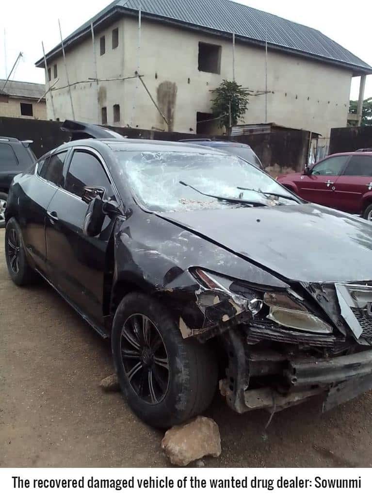 In a dramatic twist, as soon as he drove into the premises and sighted NDLEA officers, he engaged his car in reverse gear, knocked down one of the officers, pulled down his gate before plunging the vehicle into the fence of the opposite compound.