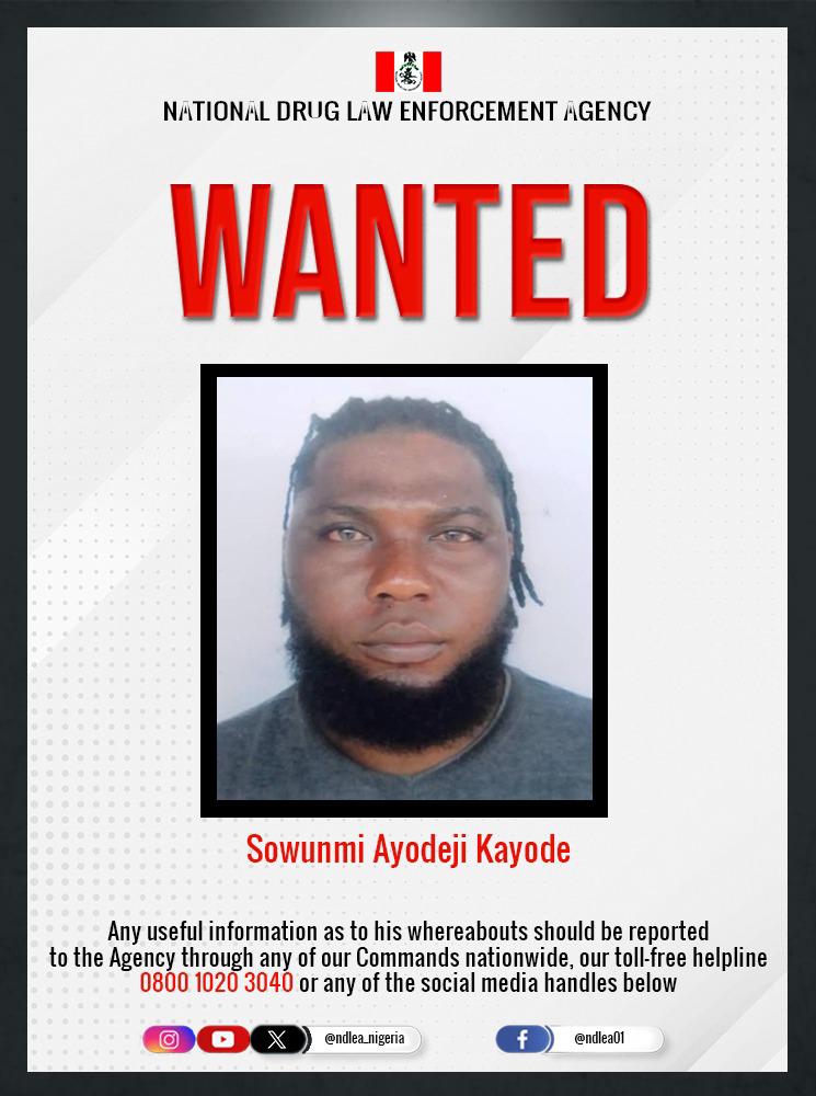 The National Drug Law Enforcement Agency has launched a manhunt for a Lekki Lagos-based notorious drug dealer, Sowunmi Ayodeji Kayode, who is now on the run after driving his luxury car to crush an NDLEA officer in his bid to escape arrest when operatives were on a search of his house last weekend.