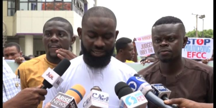 “Today’s rally is the first in the series of actions we have laid out until justice is done in this matter. All these concerns will be presented to the National Human Rights Commission any moment from now for appropriate intervention especially to protect the rights of the innocent children who have been dragged into this political war by the EFCC.”