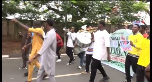 Scores of youths from Kogi State trooped out in Abuja, on Wednesday, in a May Day solidarity walk for Nigerian children to press home their disappointment with the handling of the much-publicised allegations of corruption against the immediate past Governor of Kogi State, Yahaya Bello, by the Economic and Financial Crimes Commission (EFCC).