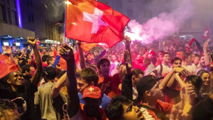 Following Euro 2020’s biggest surprise yet, Swiss TV started special coverage for many hours showing pictures of fans celebrating in public viewing sites across the country.