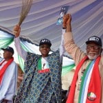 Governor Olusegun Mimiko of Ondo State with President Muhammadu Buhari at the Akure Airport…on Saturday.