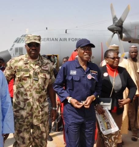 Mohammed; the Minister of Defence, Brig-Gen. Mansur Dan-Alli (rtd); the convener of the Bring Back Our Girls (BBOG) group, Mrs Obiageli Ezekwesili; as well as selected local and foreign journalists, participated in the search mission.