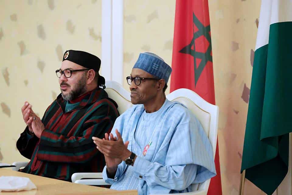 President Muhammadu Buhari (right) and Moroccan King, President Mohammed VI, during the signing of 21 Bilateral Agreements between Nigeria and Morocco at the Presidential Villa, Abuja…on Saturday.