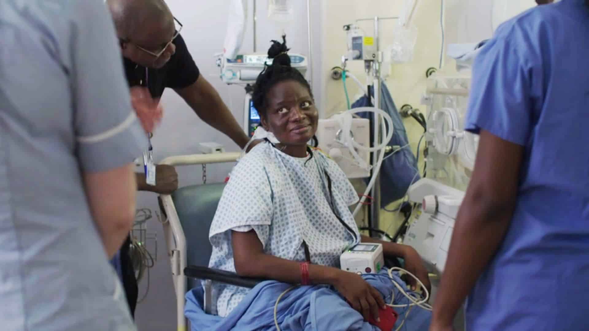 Her husband is in Nigeria, and cannot come to Britain to help take care of her as he does not have enough money for a visa or the flight.