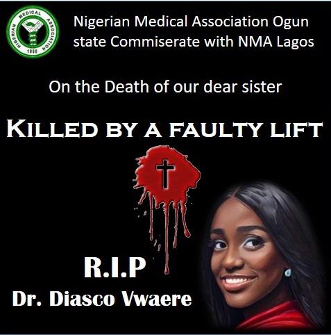Vwaere, a medical house officer with the General Hospital, Odan, Lagos, died on August 1, owing to the injuries sustained when the elevator she was in crashed from the 10th floor of the hospital building.