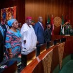 Governor Ibikunle Amosun of Ogun State (left) with President Muhammadu Buhari at the Presidential Villa, Abuja…on Sunday. Amosun was suspended by the National Working Committee (NWC) of the All Progressives Congress (APC) on Friday for anti-party activities.