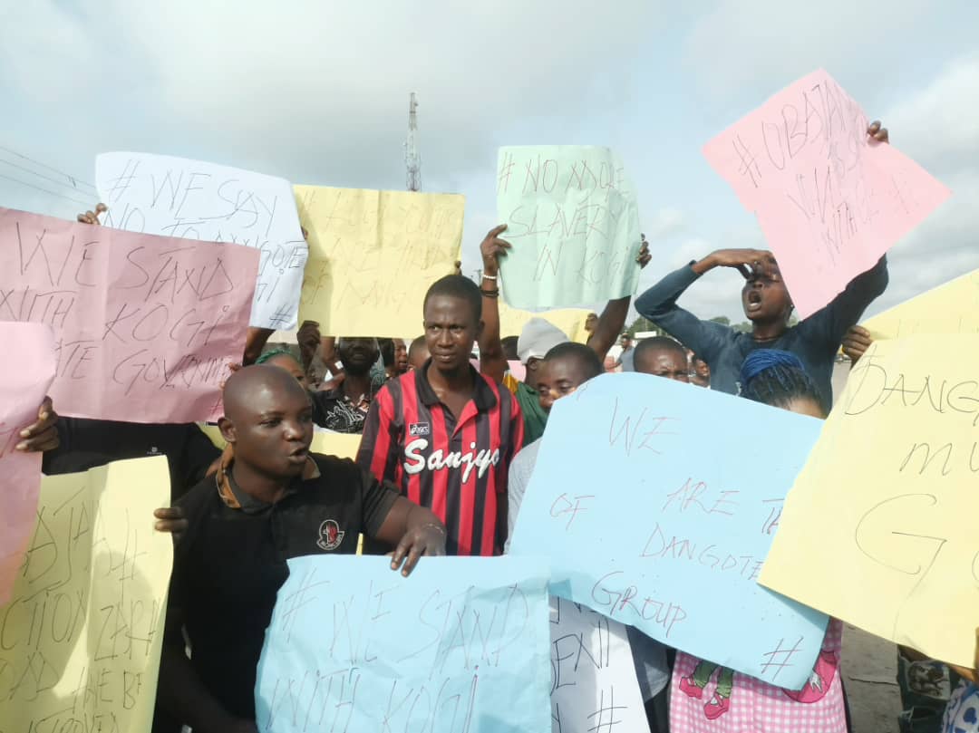 Others include: ”We stand with GYB”, ”Dangote must go”, ”Our cement Na N4200 in Kogi, and N3200 for Kano”, ”No More Slavery in Kogi, ”Kogi Youths are tired of Dangote”, ”No more slavery in Kogi”, among others.