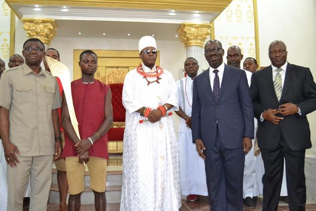 With Obaseki at the palace were the deputy governor, Philip Shaibu, Secretary to the State Government (SSG), Osarodion Ogie, Chief of Staff, Taiwo Akerele and other top government functionaries.