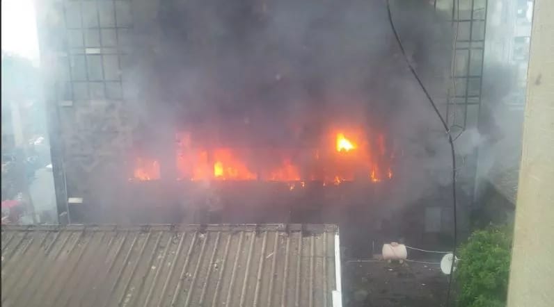 The old National Assembly Complex, Tafawa Balewa Square, Lagos on fire…Thursday.