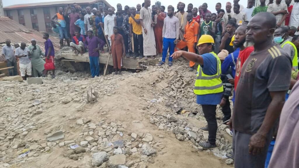 According to Farinloye, the collapsed building, which was still under construction, is located along Ishaga Road, opposite Central Mosque, Idi Araba, Mushin.