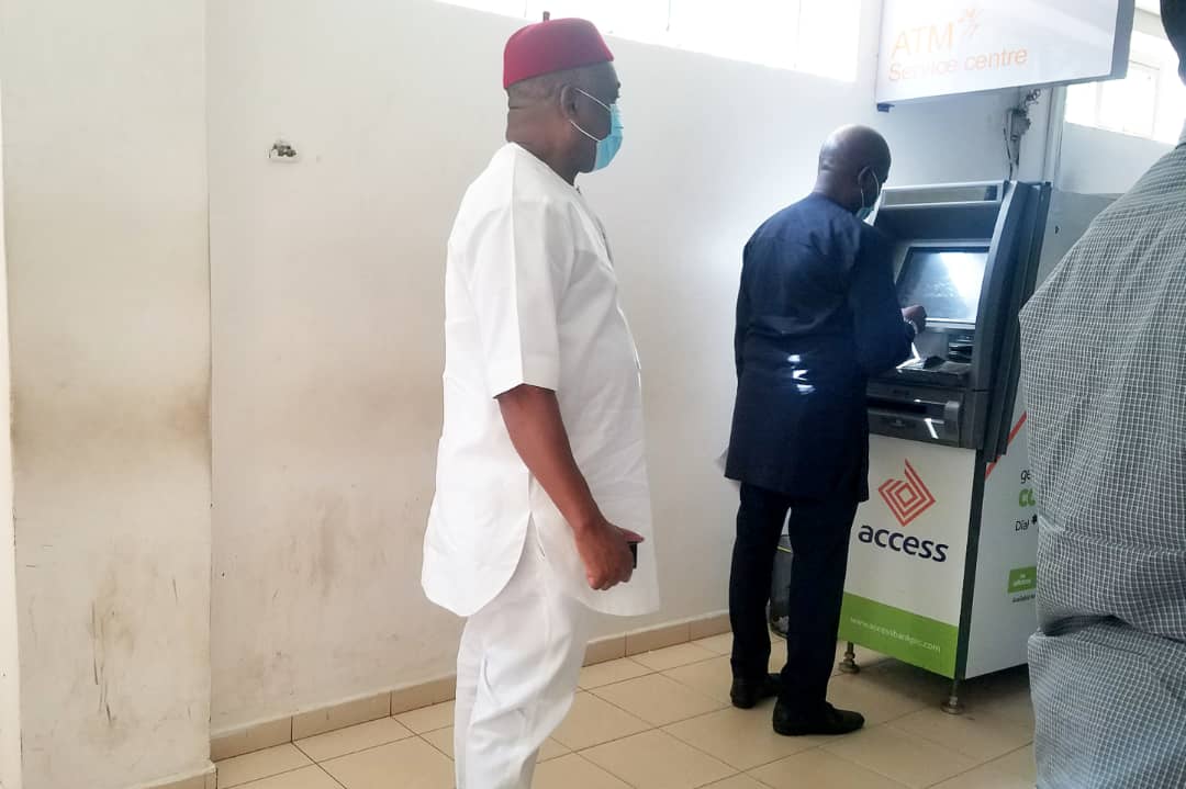 A trending photo has drawn the attention of the public eye which shows the Senate Chief Whip, Senator Orji Uzor Kalu, in his usual act of humility after he was spotted on an Automated Teller Machine (ATM) queue as he was about to carry out a transaction.