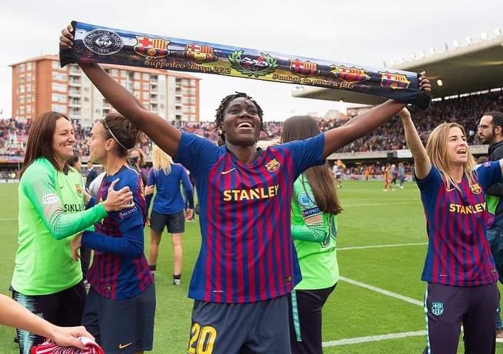 Super Falcons’ striker, Asisat Oshoala, on Sunday won the 2020/2021 UEFA Women’s Champions League with FC Barcelona Ladies.