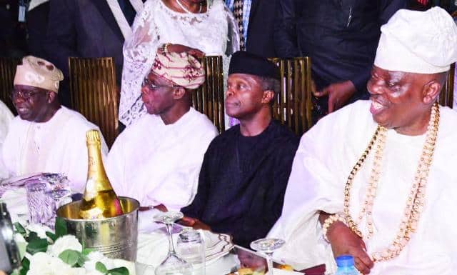 Vice President Yemi Osinbajo, former President Olusegun Obasanjo and All Progressives Congress (APC) National Leader, Bola Tinubu, on Saturday in Lagos graced the 80th birthday celebration of Chief Rasaq Okoya, founder of Eleganza group of companies.