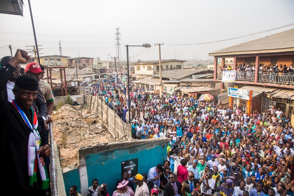 The ever busy Ikosi road in Lagos was a beehive as jubilant residents, traders, hawkers and artisans lined the road and hailed while the vice president stopped at intervals, alighted from his motorcade and acknowledged cheers.