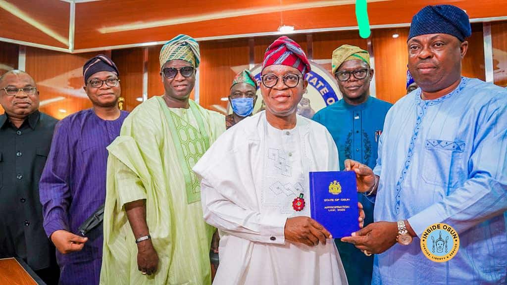 The Governor of Osun, Adegboyega Oyetola, on Wednesday, signed the year 2022 Appropriation Bill into Law.