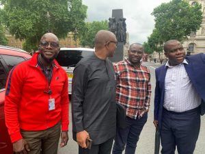 Presidential aspirant on the platform of the Peoples Democratic Party (PDP), Mr Peter Obi (left), with Lord Jonathan Peter Marland of Odstock, at 10 Downing St., London, shortly before they entered a meeting with the British Prime Minister, Mr. Boris Johnson…on Monday. Peter Obi