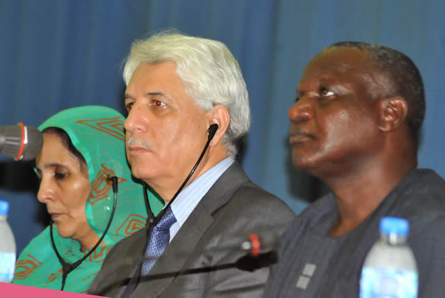 From Left: 2nd Vice President, Pan-African Parliament, Suelma Beiruk; Algerian Minister of Justice, Mr Taijeb Louh and NLC President, Comrade Abdulwaheed Omar, at the African Conference of Solidarity with the struggle of the people of Western Sahara in Abuja on Monday