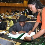 From left: Deputy Speaker of House of Representatives, Emeka Ihedioha; Senate President, David Mark; the First Lady, Dame Patience Jonathan and Secretary to Government of the Federation (SGF), Sen. Anyim Pius Anyim at the Democracy Day Interdenominational Church Service in Abuja on Sunday