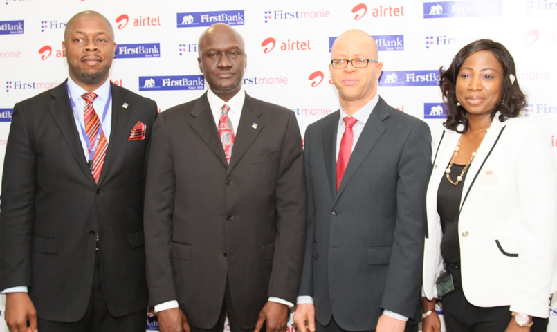 L-R: Head, Mobile Financial Services, First Bank of Nigeria Limited, Mr. Mike Ogbalu; Head, Technology & Services, FirstBank, Mr. Akin Fanimokun; Director, Regulatory Affairs & Special Projects, Airtel Nigeria, Mr. Osondu Nwokoro and Team-Lead, Public Sector & Telcoms, MFS, Mrs. Folasade Femi-Lawal at the formal launch of FirstMonie Talkmore Campaign, a partnership between FirstBank of Nigeria’s FirstMonie and Airtel Network, which took place at the bank’s Head Office recently.